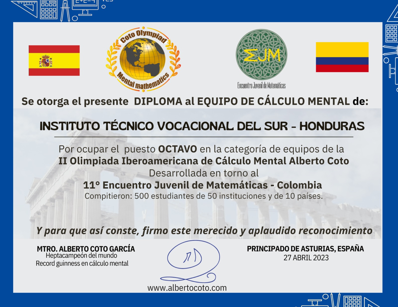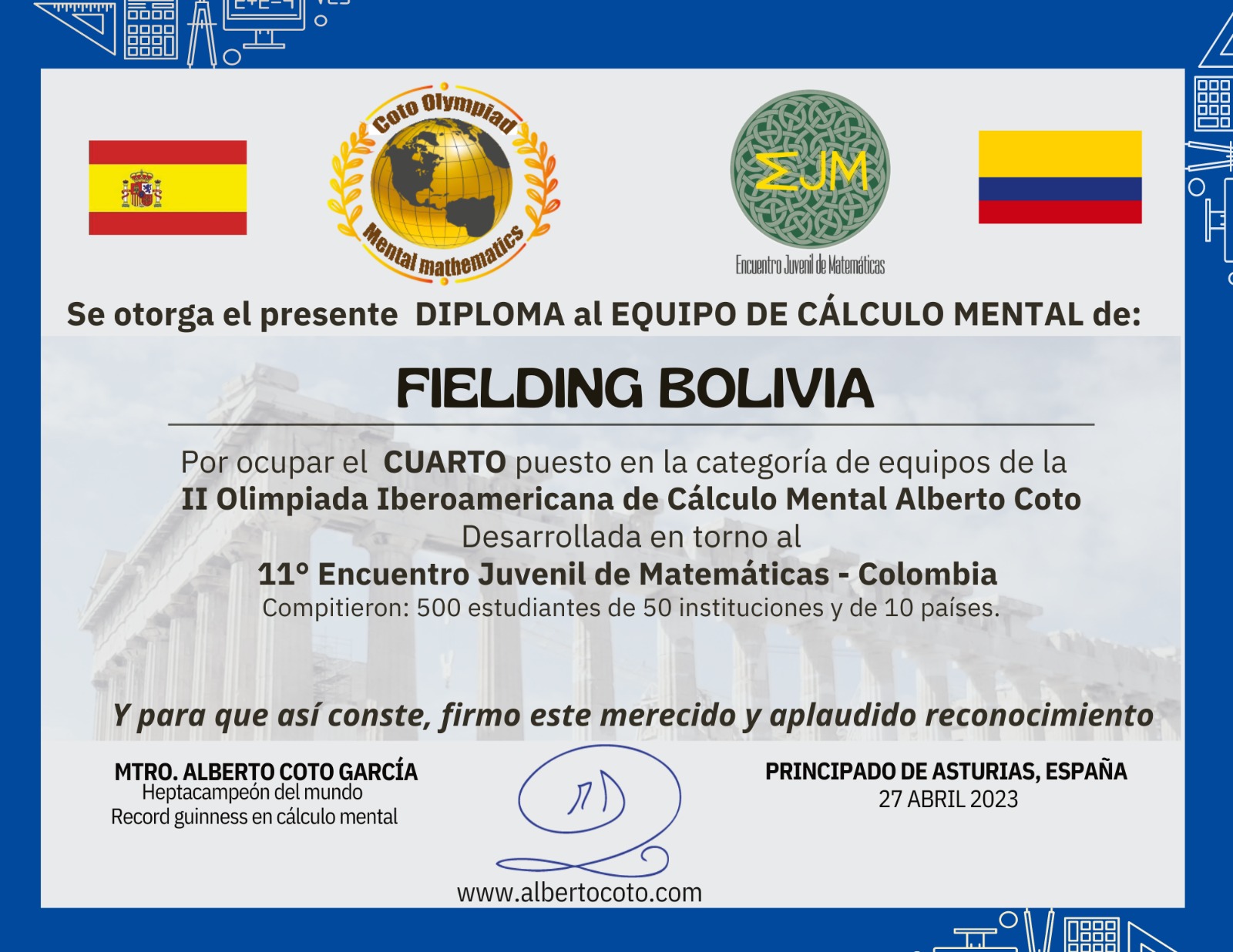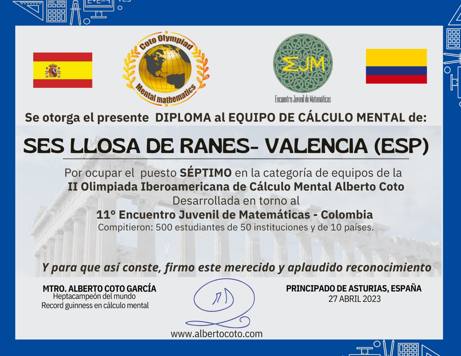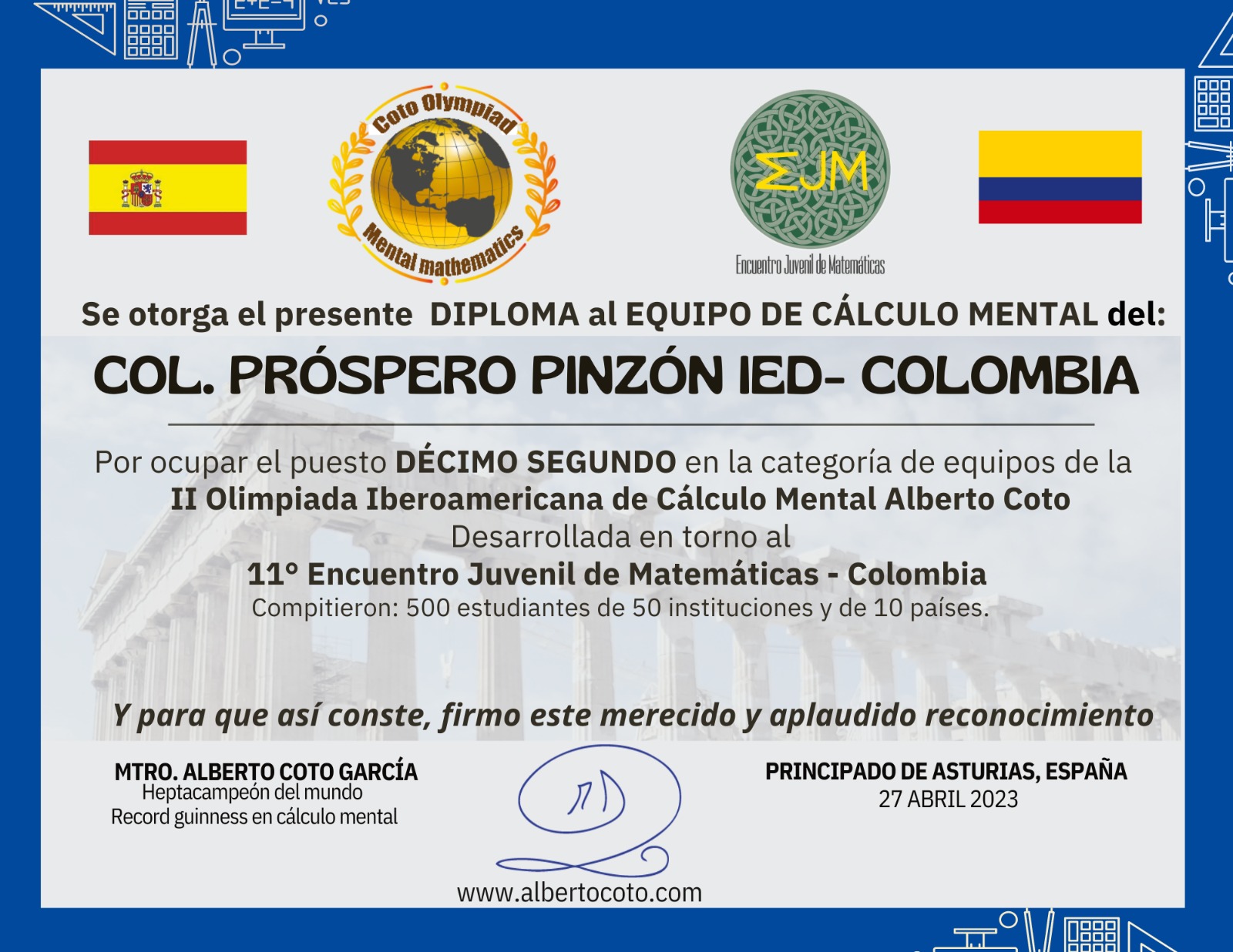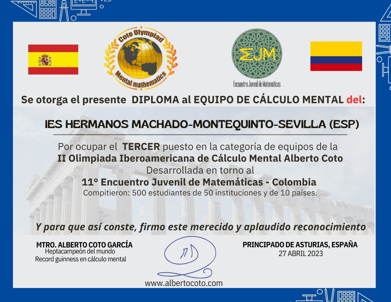 Durante el mes de abril de 2023 desarrollamos la II OLIMPIADA EJM-ALBERTO COTO, desde Bogotá-Colombia, y para todo el Mundo Hispano.